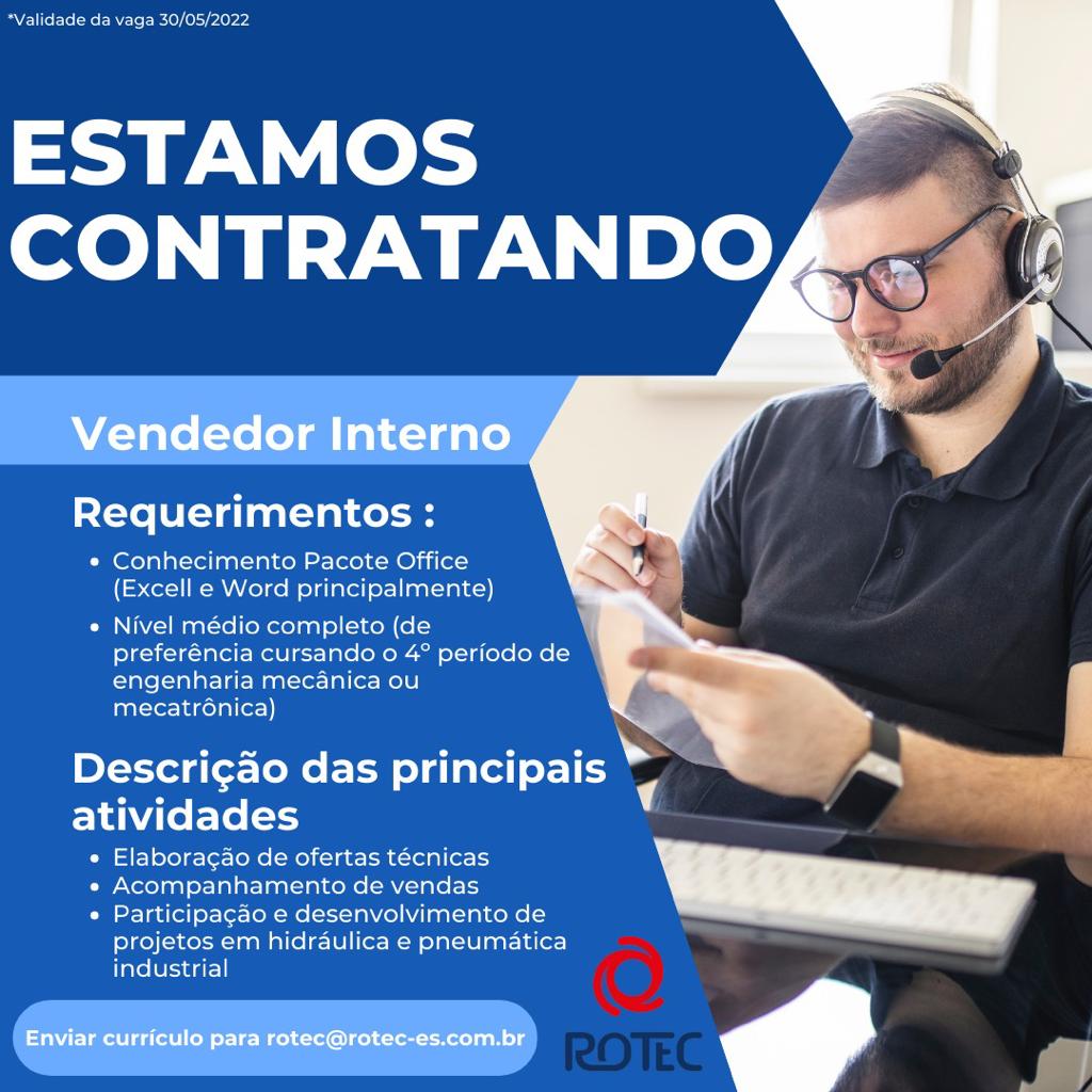 - Conhecimento Pacote Office (Excell e Word principalmente) - Nível médio completo (de preferência cursando o 4º período de engenharia mecânica ou mecatrônica).